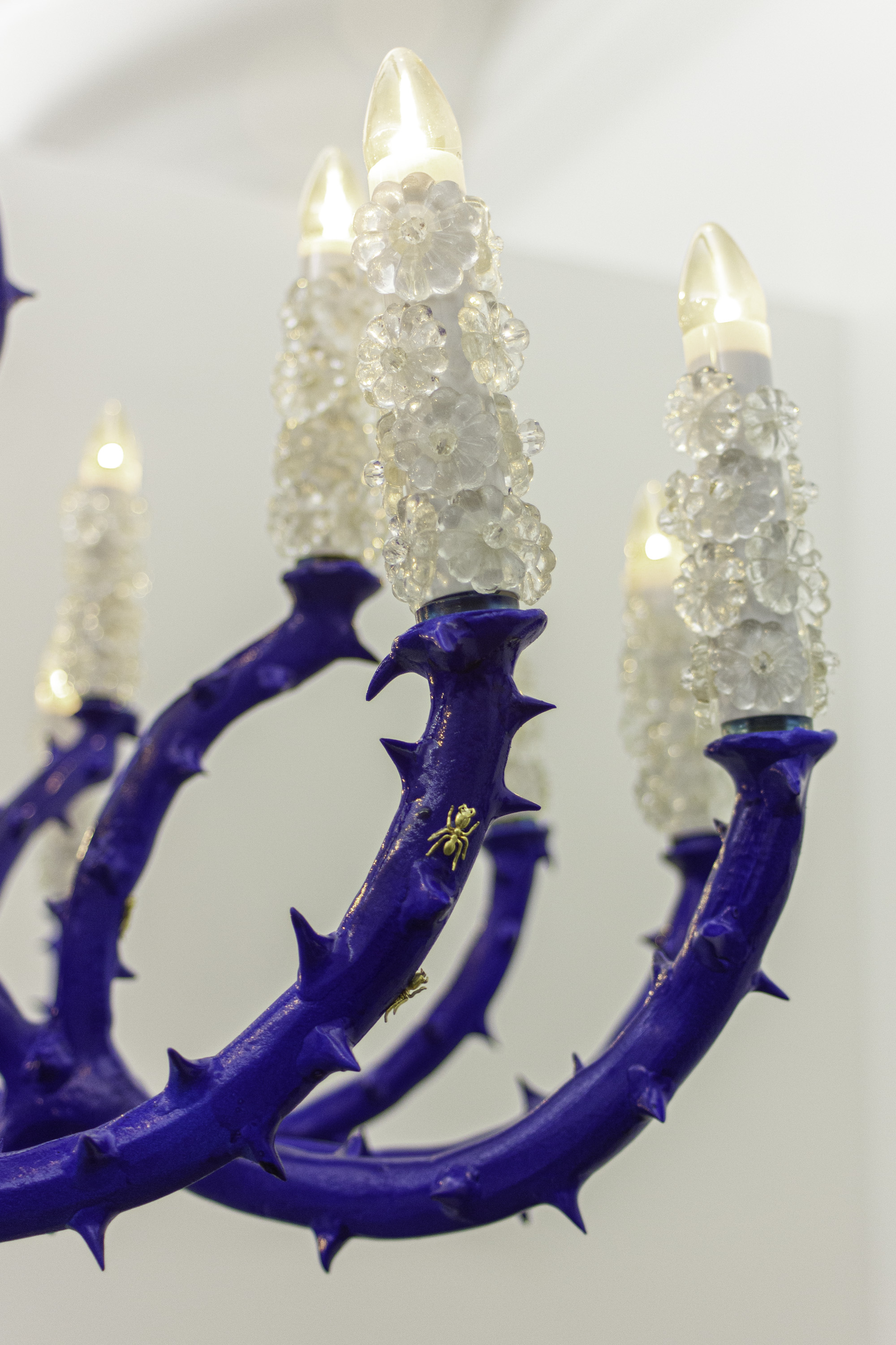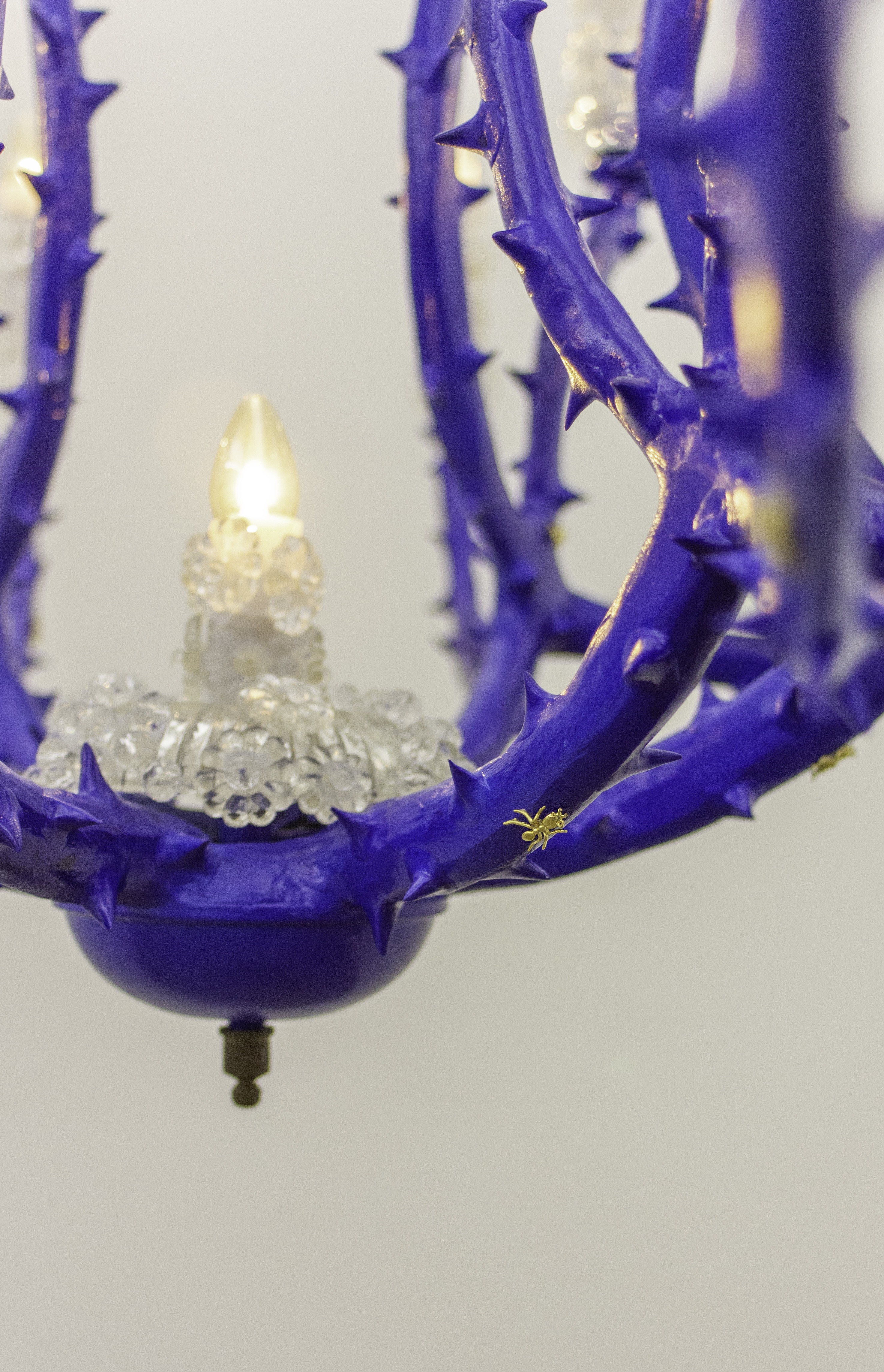 Thorns and ants crawl across the surfaces of lamps, sconces, and candelabras, mimicking the trail of sugar ants that create a line through my bedroom every summer.