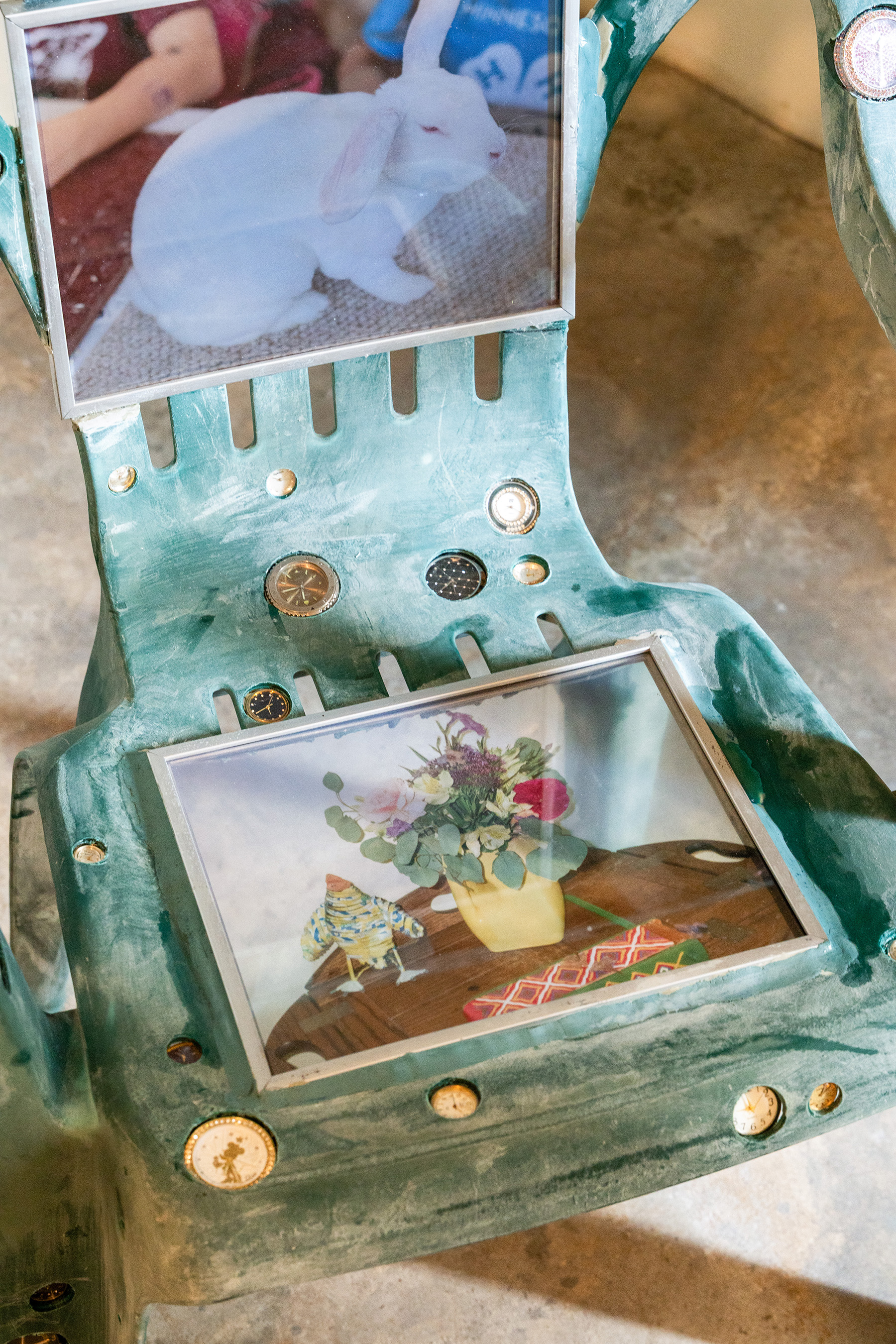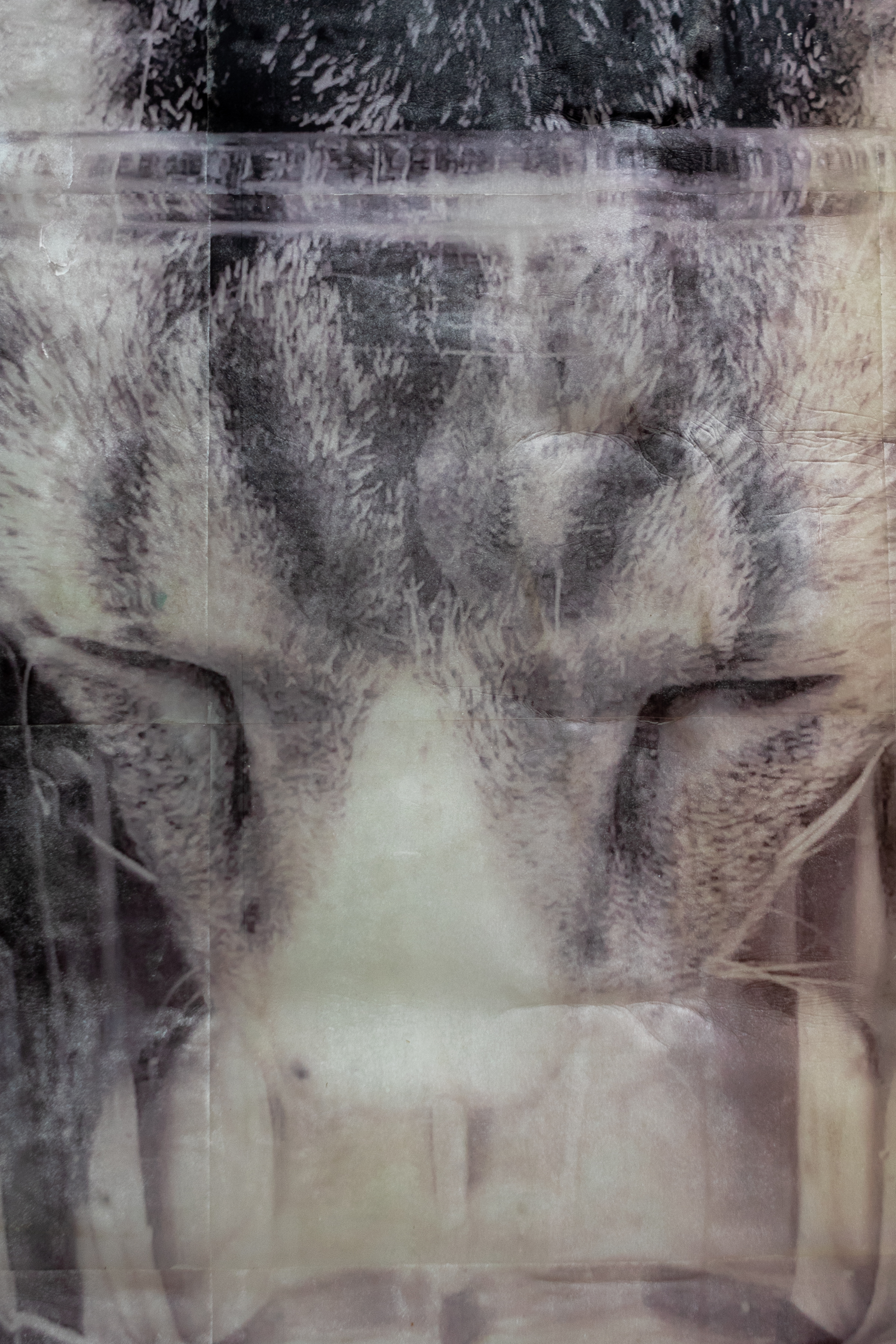 glass, copper, plastic, bird skull, clay, cotton, shell, image transfer, kombucha scoby